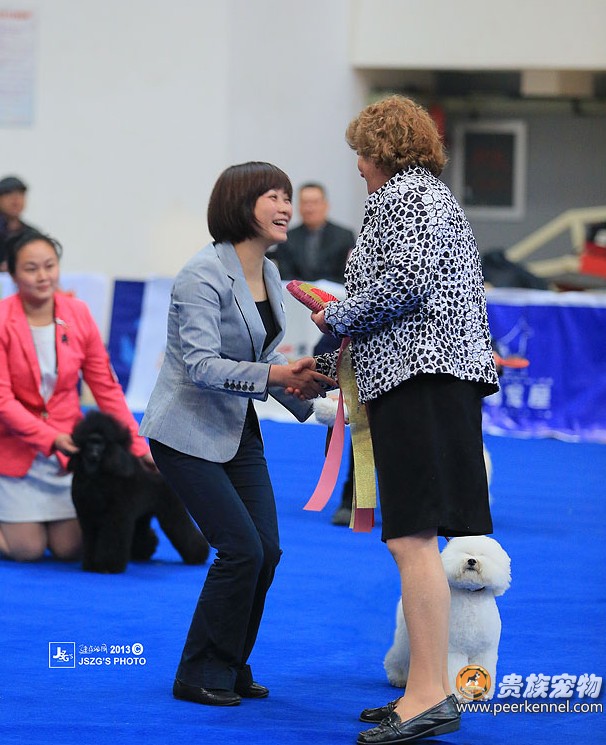 Discovery不愧為我們貴族寵物新一代的小戰神.繼廊坊AKU亞洲全犬種國際冠軍展獲得全場后備總冠軍之后,給我們上演了一場犬展界的“帽子戲法”,在此次CKU舉辦的中國全犬種冠軍展上,連續三次獲得全場總冠軍BIS1x3的驕人成績,獲得了諸位裁判的青睞。真是激動人心的時刻!這證明范老師這段時間的辛苦付出是值得的,更加另人欣慰的是,初上賽場的Nat也榮獲Baby全場后備總冠軍的好成績,同時也恭喜我們可愛的Rainblow為它的新主人高小姐贏得了一份榮譽,真是一群讓人贊嘆的孩子們~~