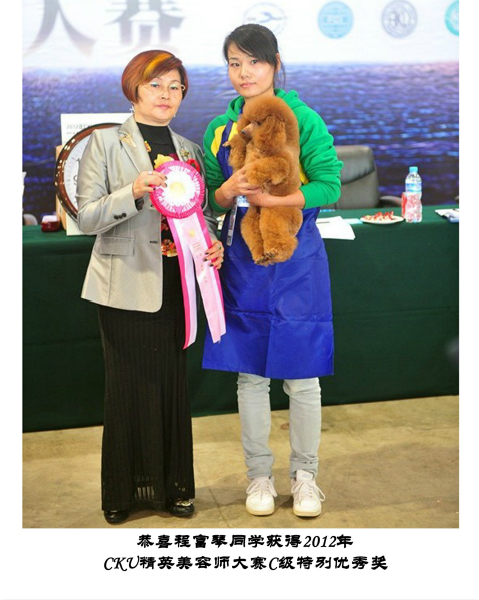 武漢貴族寵物美容培訓學校優秀學員程富琴同學榮獲2012年CKU美容認證考試C級特別優秀獎
