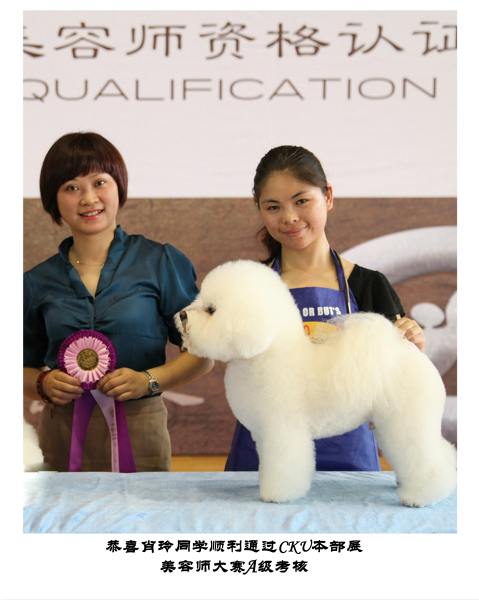 武漢貴族寵物美容培訓學校優秀學員肖玲同學榮獲CKU美容認證考試A級考核